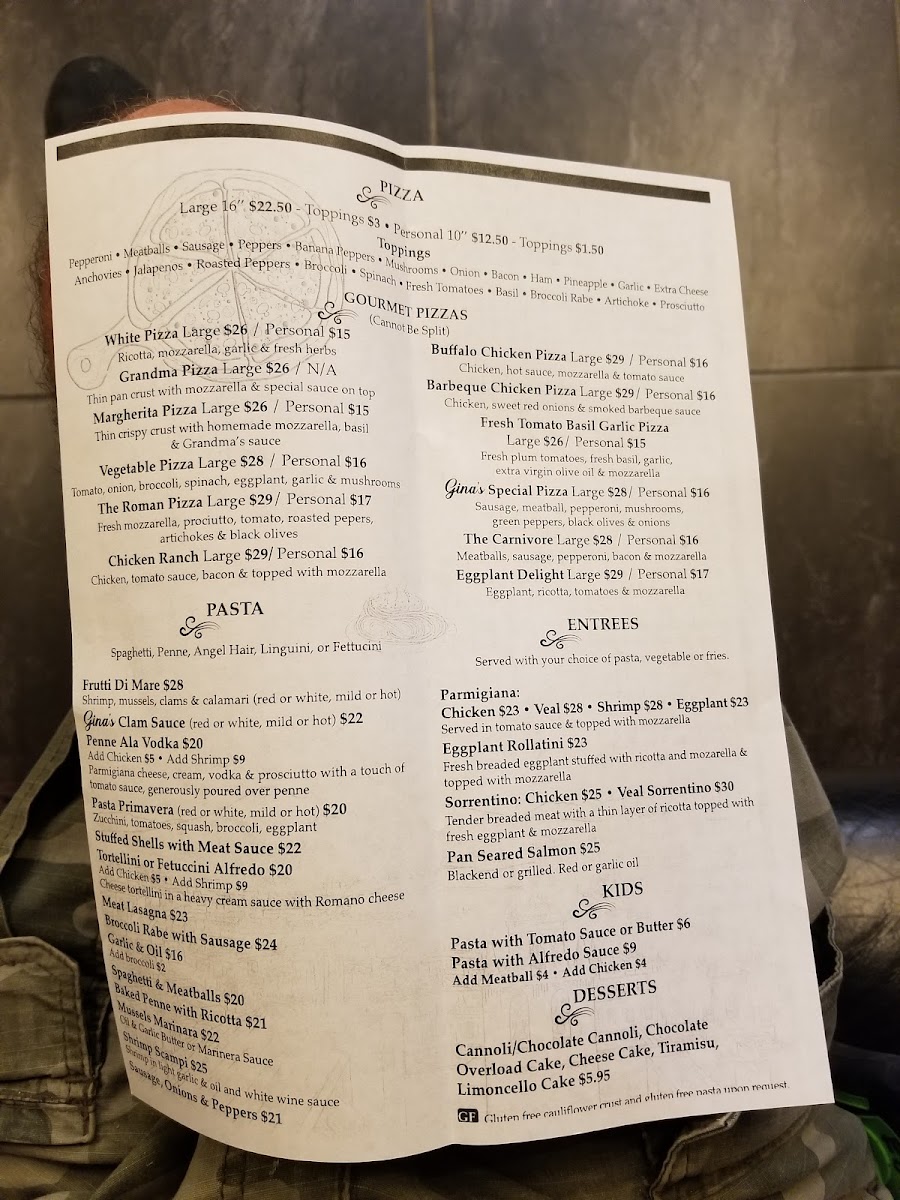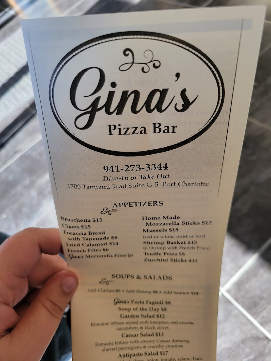 Gina's Pizza Bar Menu